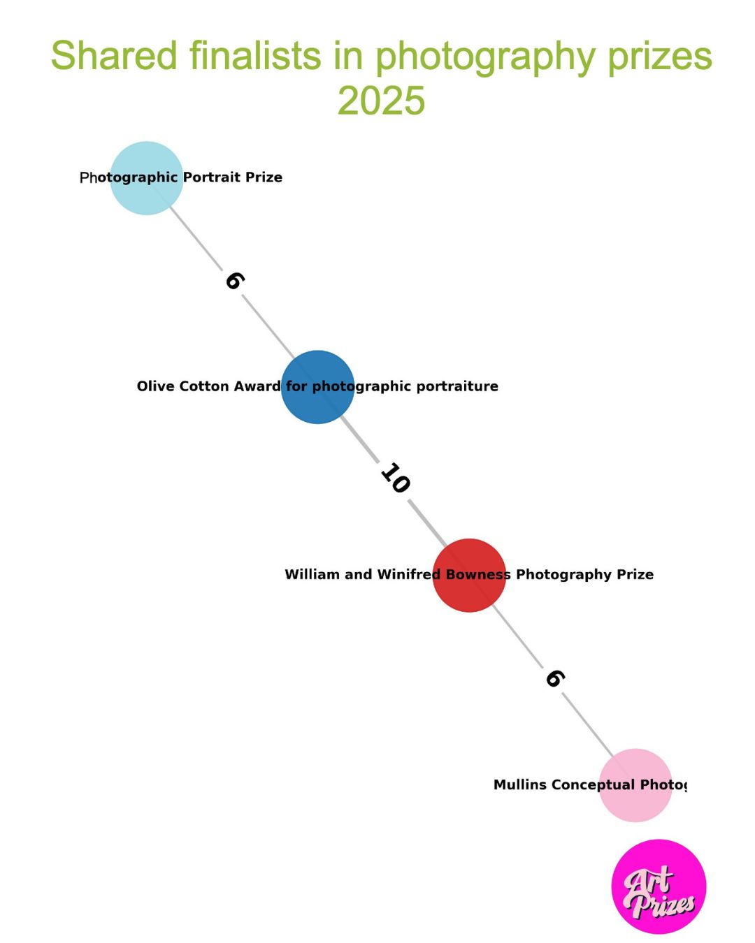 | Olive Cotton Award for photographic portraiture | William and Winifred Bowness Photography Prize | 10 | Ella Dreyfus, Ingvar Kenne, Jane Burton, Jessica Schwientek, Kojiro Oishi, Meng-Yu Yan, Naomi Hobson, Riste Andrievski, Shea Kirk, Tamara Dean |